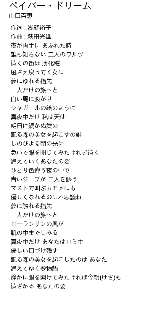 | [03:00.974] | 真夜中だけ あなたはロミオ |