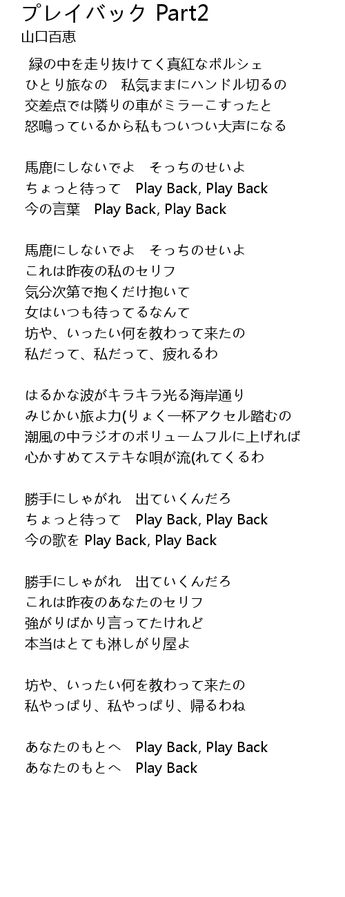 プレイバック Part2 Part2 Lyrics