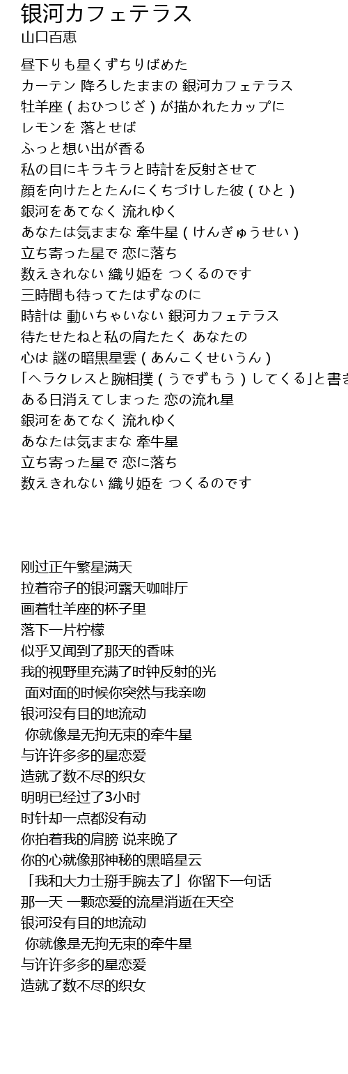 | [01:15.000] | あなたは気ままな 牽牛星(けんぎゅうせい) |