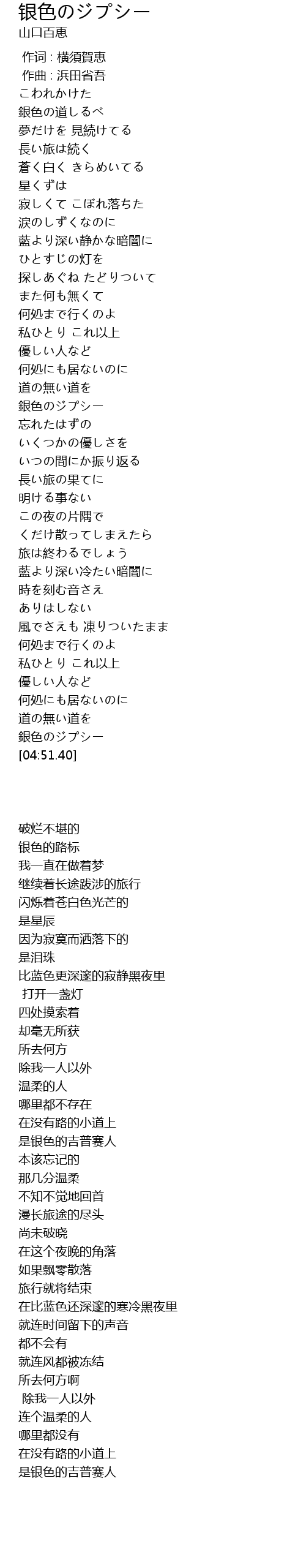 | [04:43.60] | 銀色のジプシー |