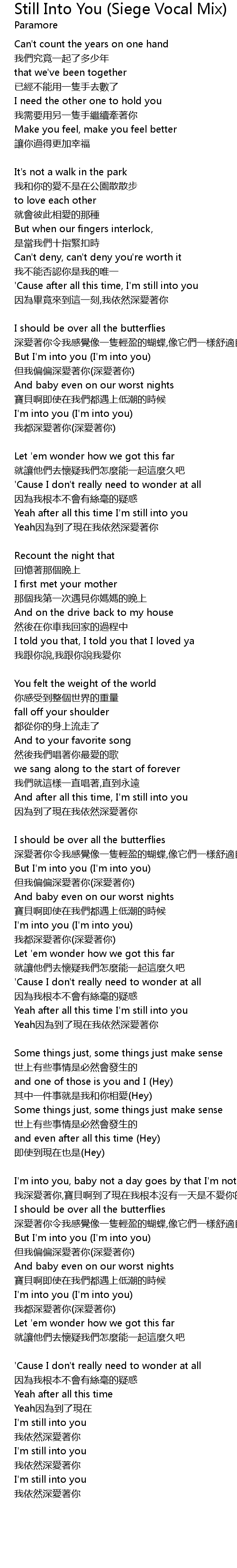 | Yeah yīn wèi dào le xiàn zài wǒ yī rán shēn ài zhe nǐ | |