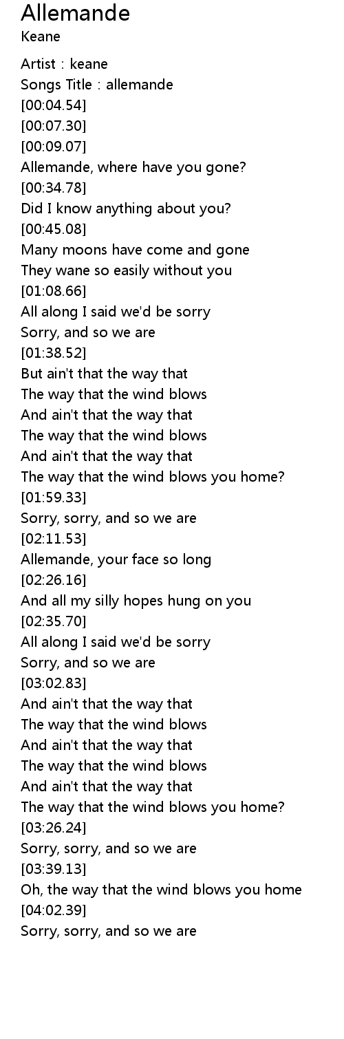 | [00:24.61] | Allemande, where have you gone? |