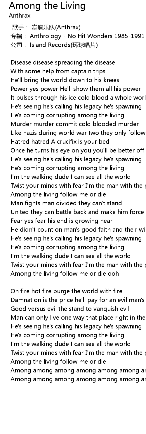 | 歌手: 炭疽乐队(Anthrax) | |