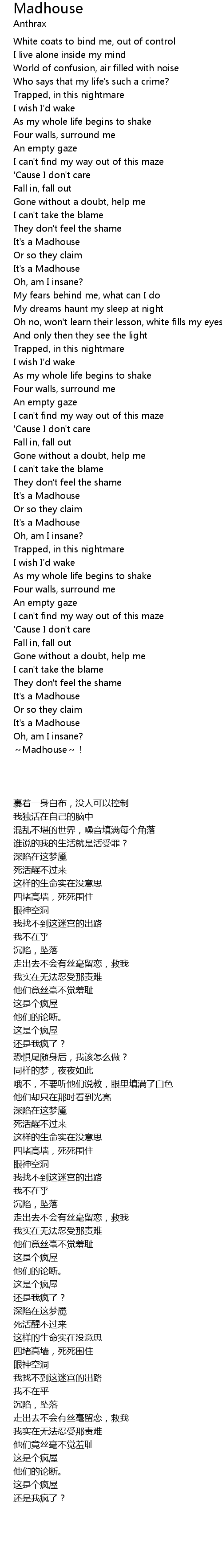 | [00:36.400] | White coats to bind me, out of control |