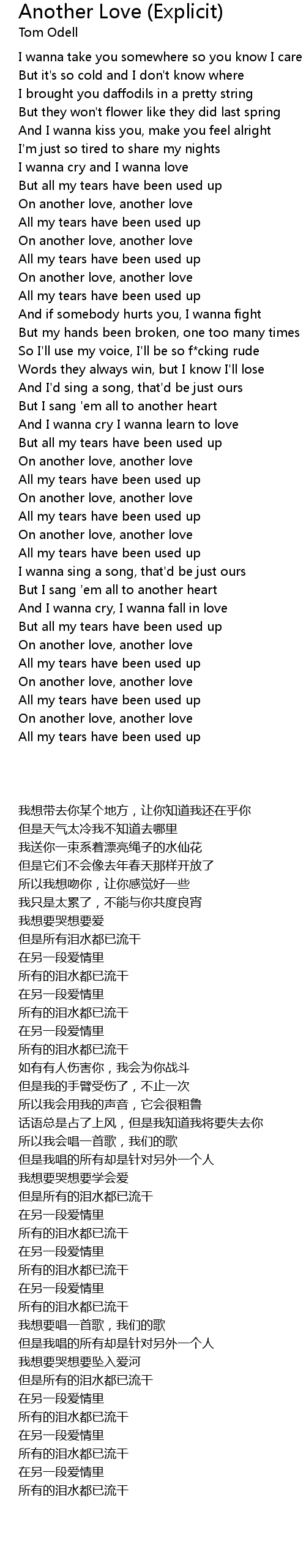 But all my tears have been used up |
