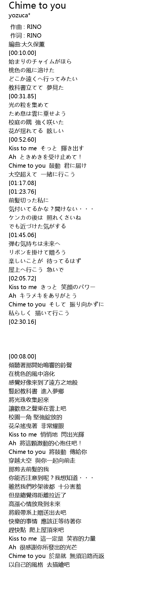 | [02:16.38] | Chime to you そして 振り向かずに |