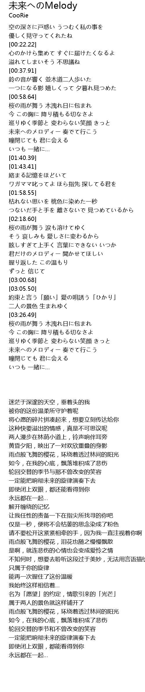 | [03:52.10] | 未来へのメロディー 奏でて行こう |