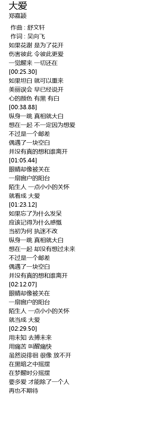 [02:59.56] yào duō ài cái néng chú le yí ge rén