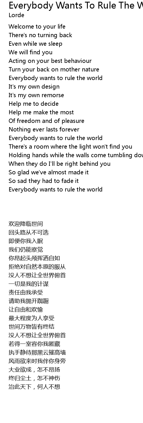 Everybody wants to rule the world |