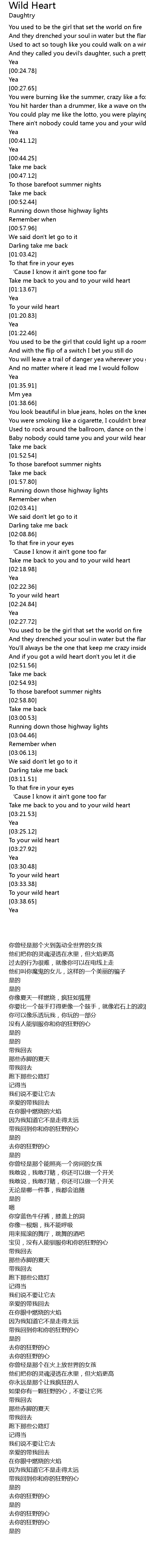 | [00:37.88] | There ain' t nobody could tame you and your wild heart |