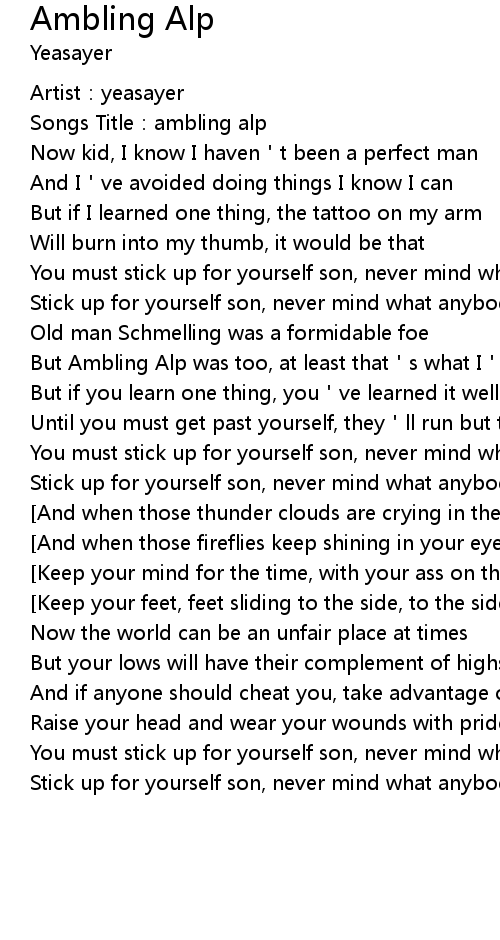| Stick up for yourself son, never mind what anybody else done x3 |