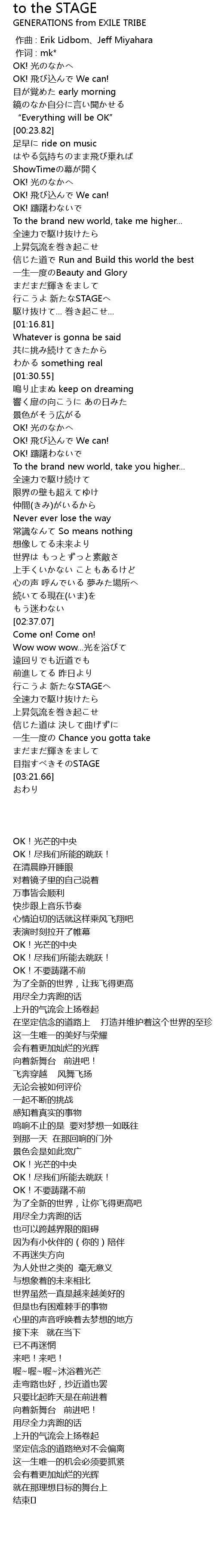 | [02:55.55] | 行こうよ 新たなSTAGEへ |