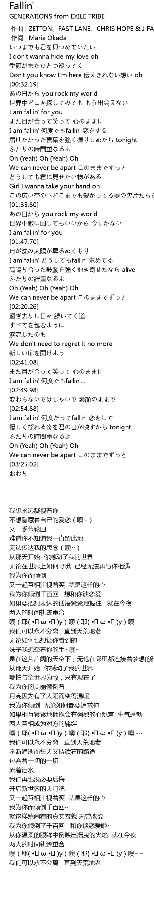 | [02:56.25] | I am fallin' hé dù fallin' liàn |