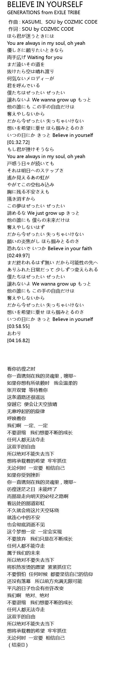 | [02:41.63] | 恐れないで いつか Believe in your faith |