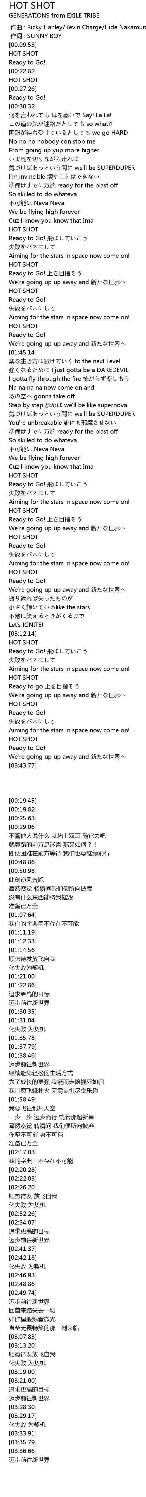 | [01:23.49] | Ready to Go! shàng mù zhǐ |