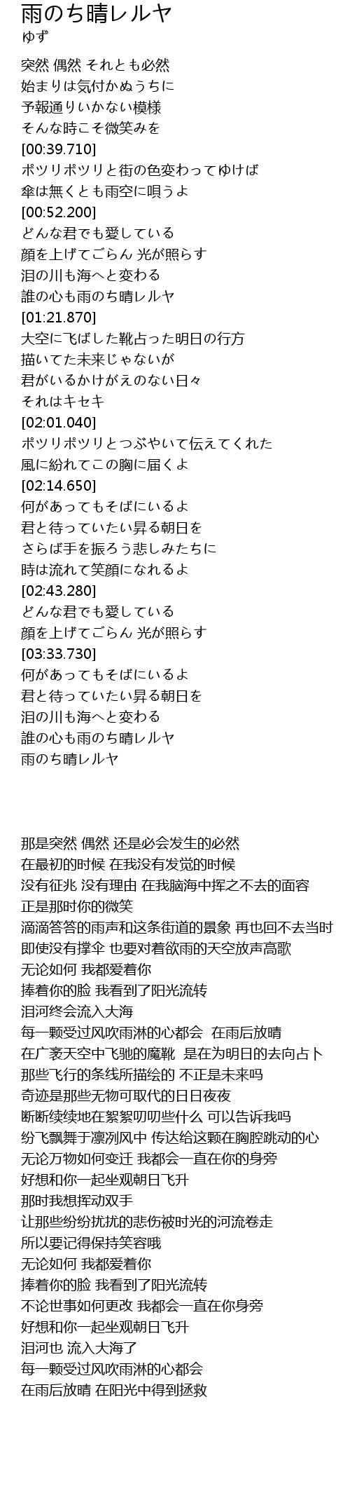 | [03:54.400] | 誰の心も雨のち晴レルヤ |