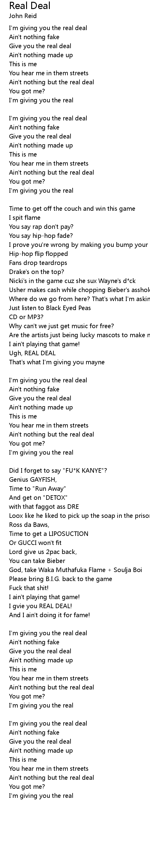 | I'm giving you the real deal | |