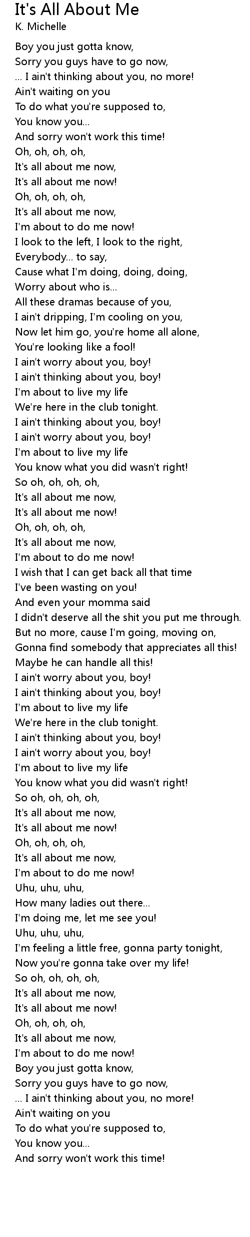 It's all about me now, |