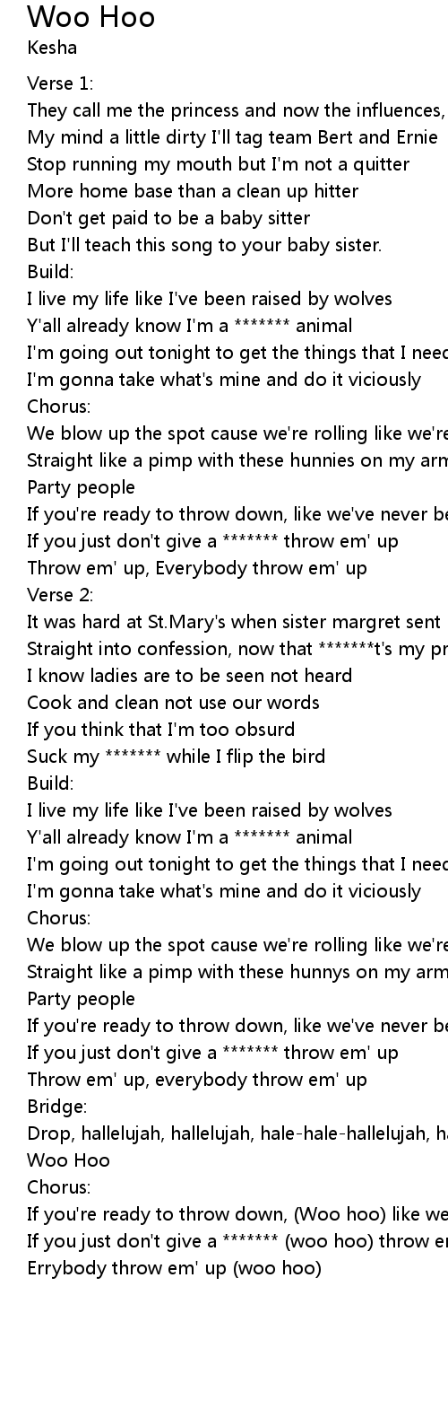 | If you just don't give a ******* (woo hoo) throw em' up throw em' up (woo hoo) | |