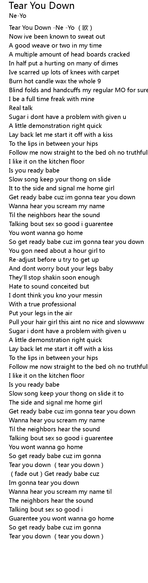 | [00:00.00] | Tear You Down -Ne -Yo (欧) |