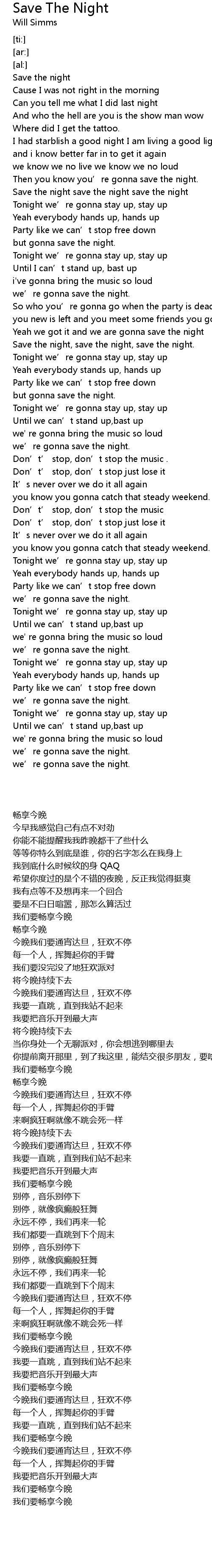 | [00:39.07] | Save the night save the night save the night |