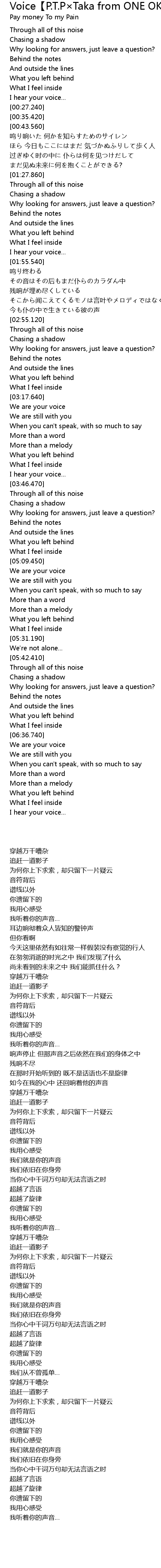 | Song | Voice【P.T.P×Taka from ONE OK ROCK】 |