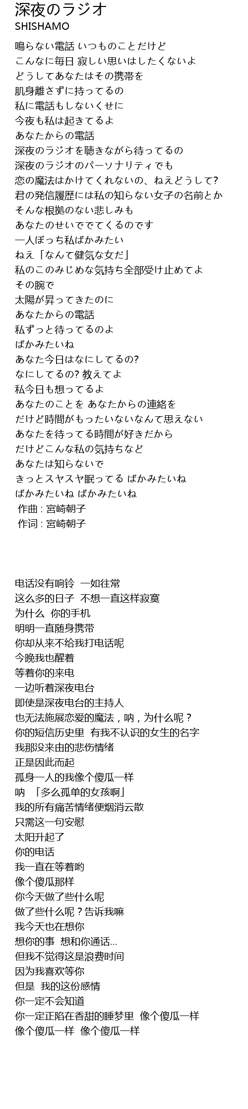 | [01:13] | 深夜のラジオを聴きながら待ってるの |