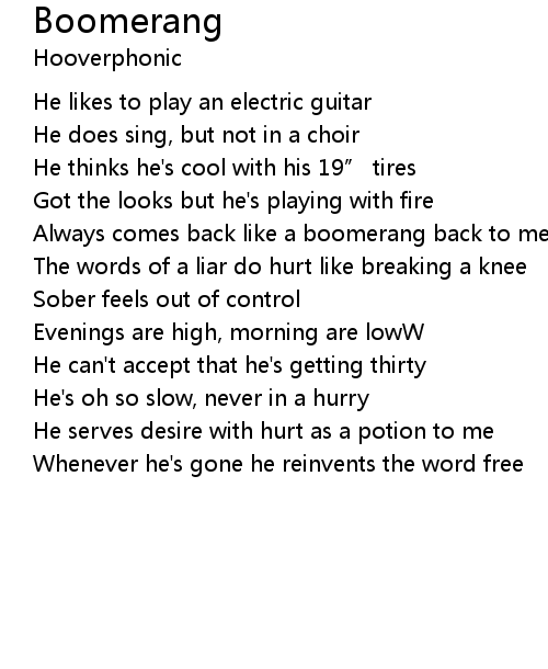 | Always comes back like a boomerang back to me | |