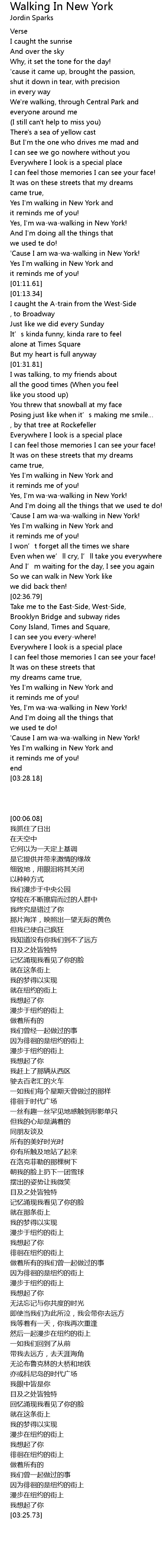 | [00:52.83] | Yes I' m walking in New York and |