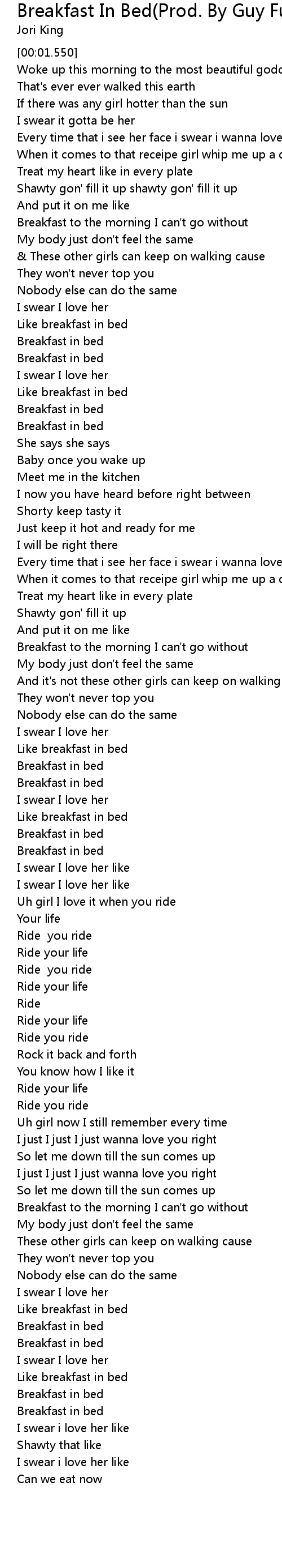 | [02:31.980] | Uh girl I love it when you ride |