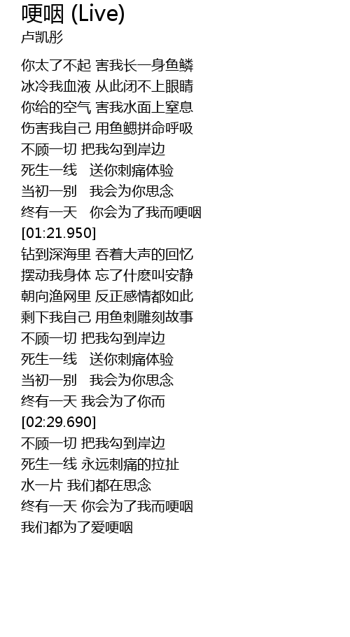 | [00:22.980] | 你太了不起 害我长一身鱼鳞 |