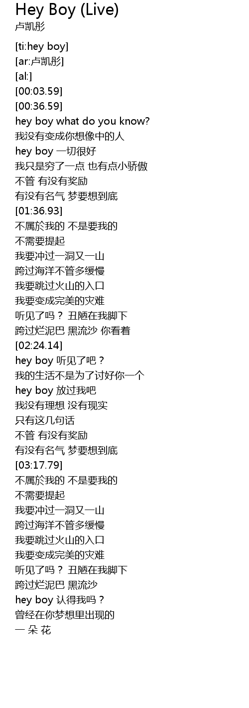 | [02:46.40] | hey boy tīng jiàn le ba? |