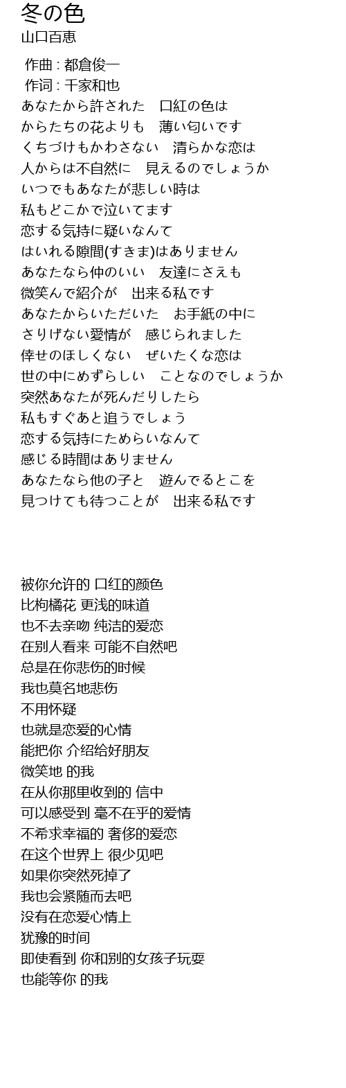 | [01:38.11] | あなたからいただいた お手紙の中に |