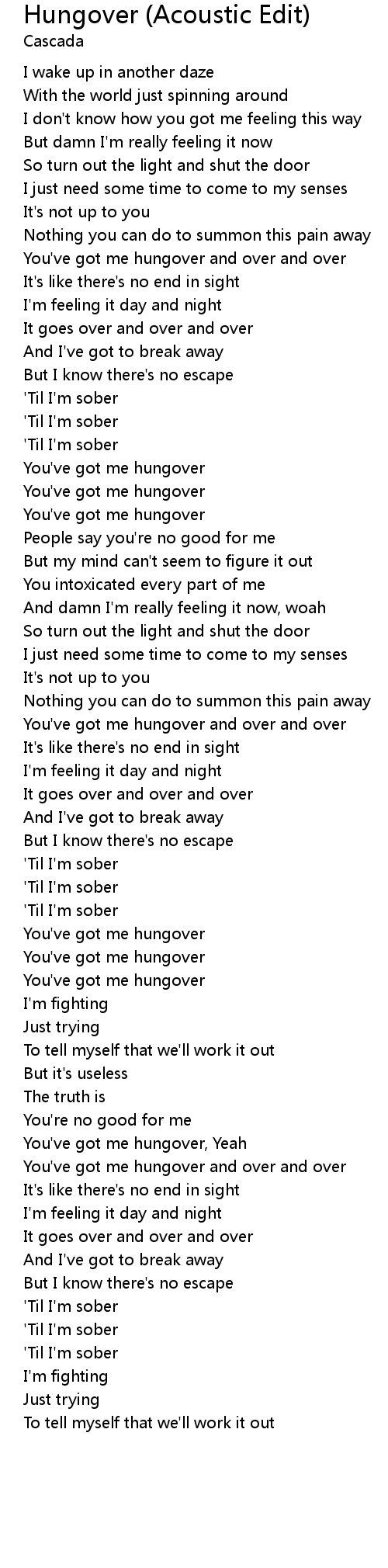 You've got me hungover and over and over |