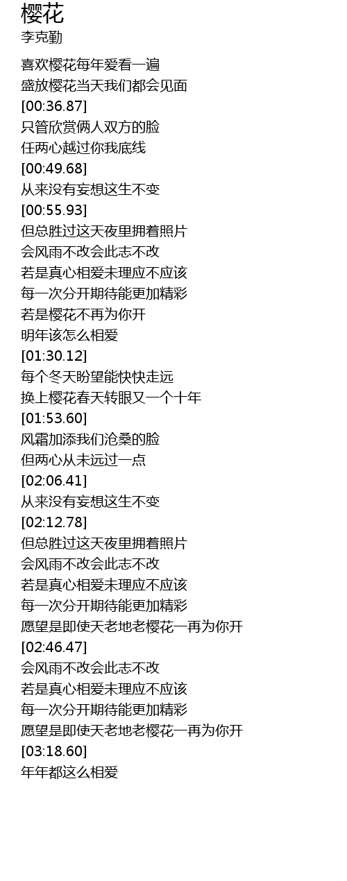| [00:25.69] | 喜欢樱花每年爱看一遍 |
