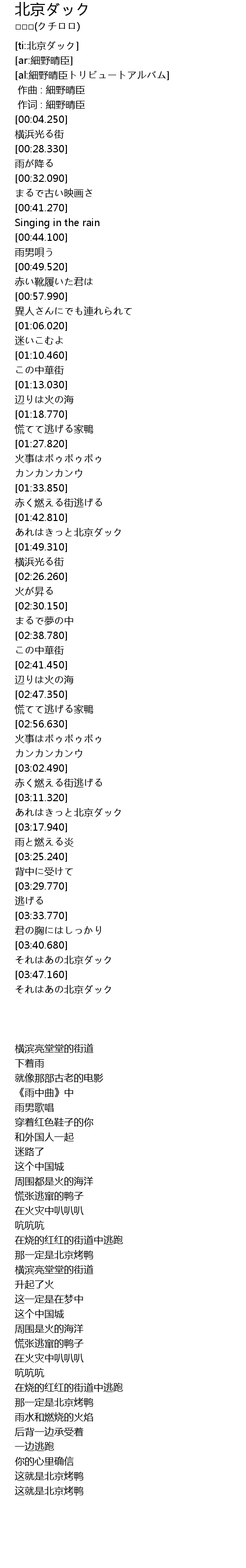 | [00:00.00] | 作曲 : 細野晴臣 |