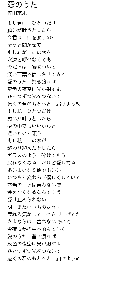 | [03:58.03] | 遠くの君のもとへと 届けよう※ |