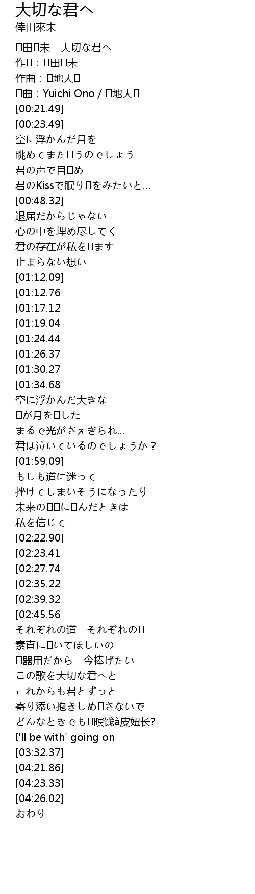 | [00:00.00] | �田�未 - 大切な君へ |