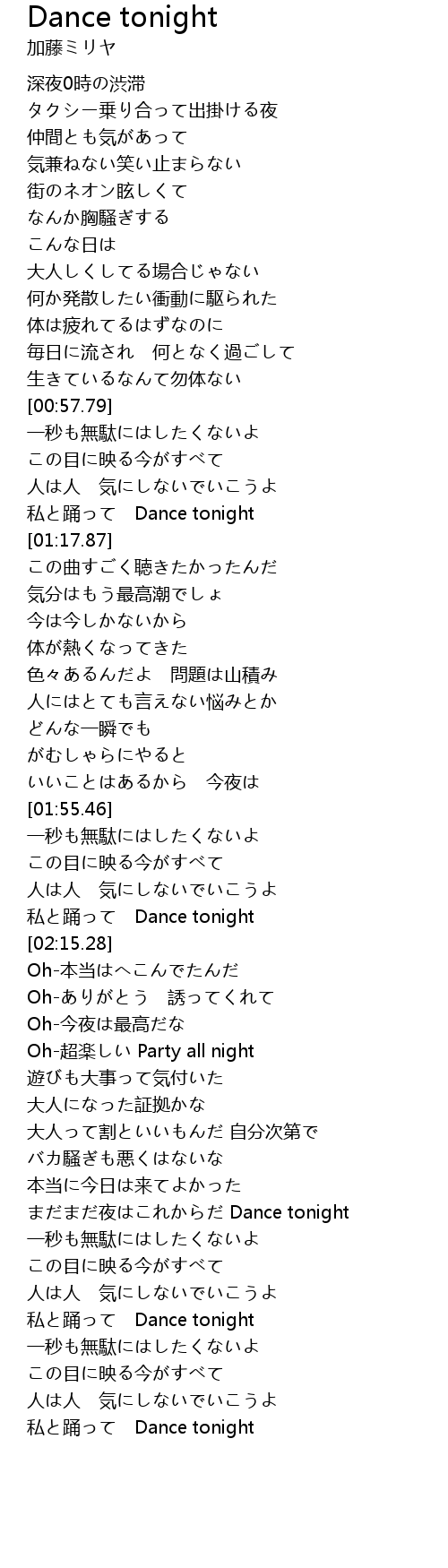 | [03:08.07] | 私と踊って Dance tonight |