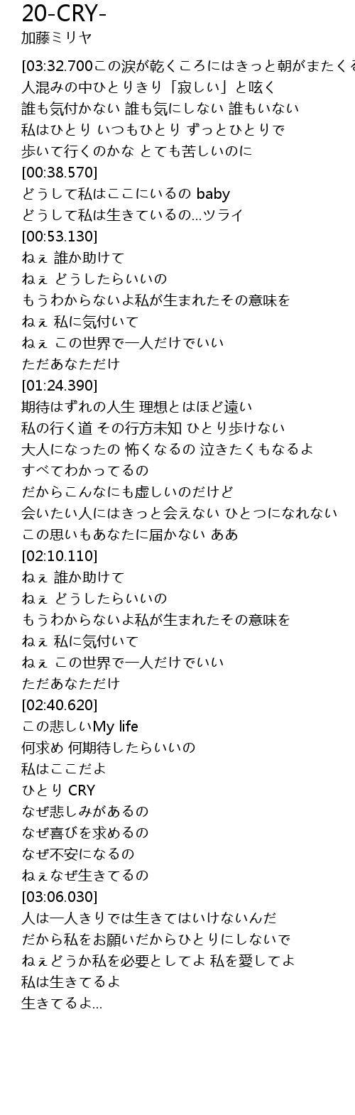 | [03:12.770] | だから私をお願いだからひとりにしないで |
