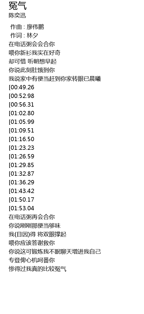 | [03:17.15][01:29.85] | 喂喂 我不敢委屈你 |