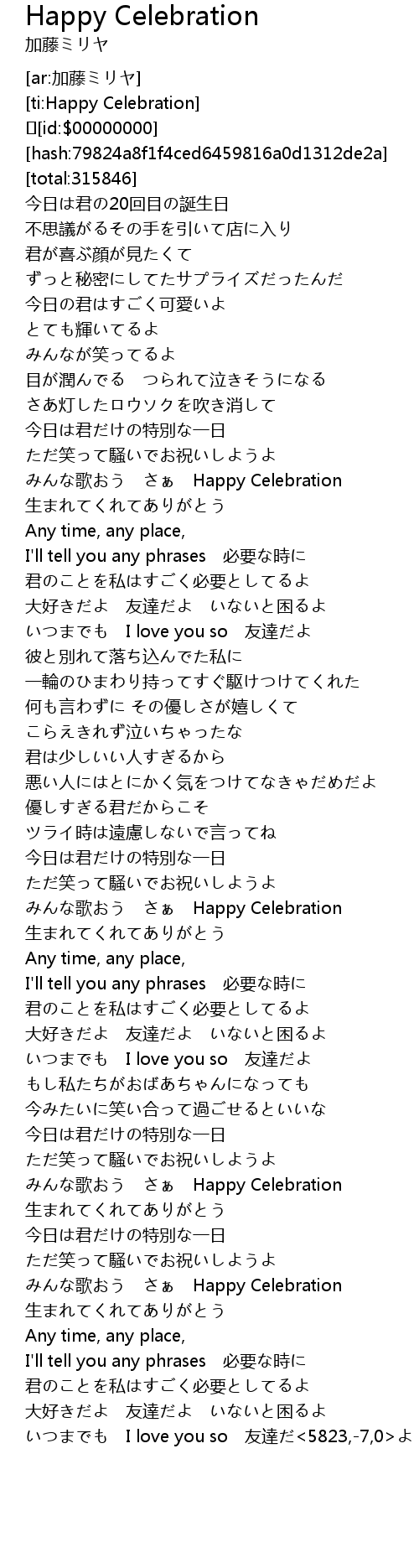 | [03:00.673] | みんな歌おう さぁ Happy Celebration |