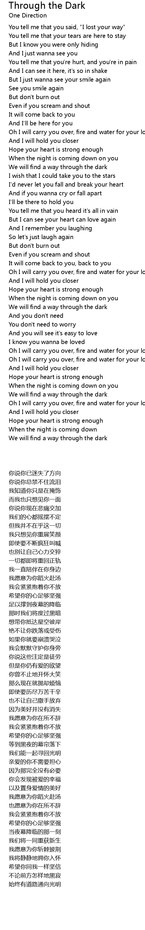 Oh I will carry you over, fire and water for your love |