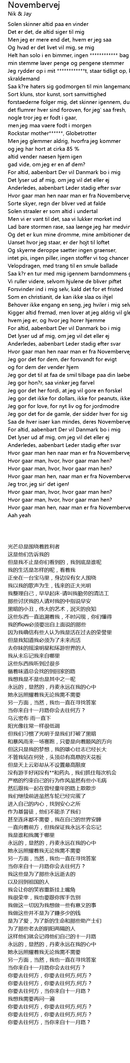 | [00:29.64] | Jeg rydder op i mit ************t, staar tidligt op, kald mig skraldemand |