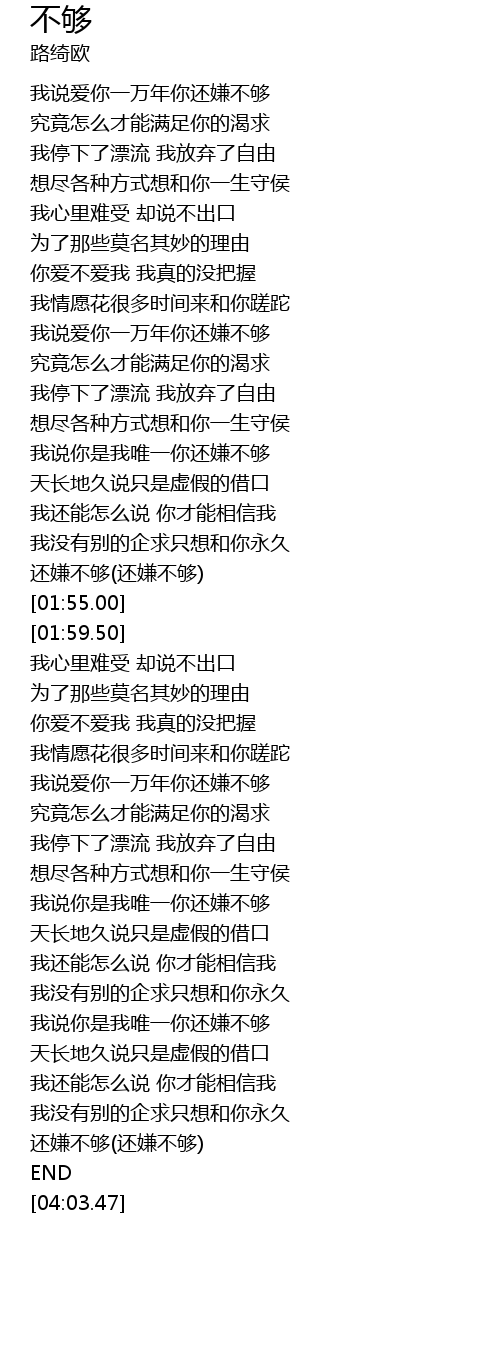 | [03:47.72] | 还嫌不够(还嫌不够) |