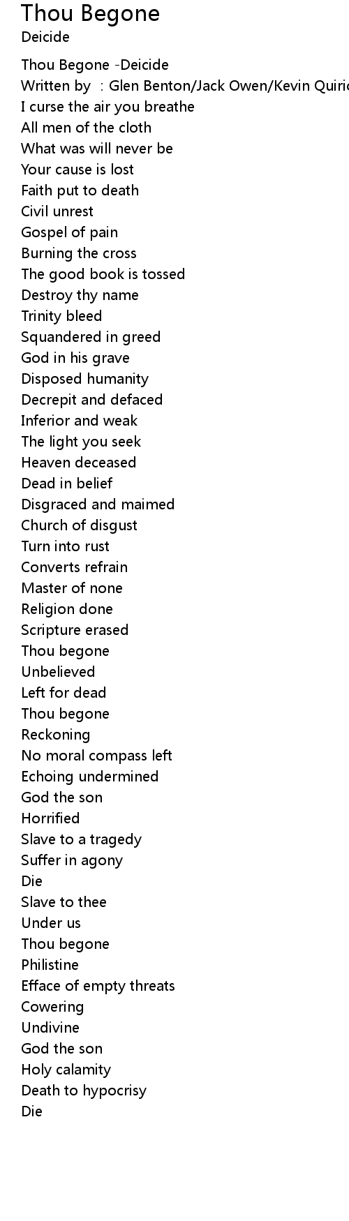 | [00:00.581] | Written by : Glen Benton Jack Owen Kevin Quirion |