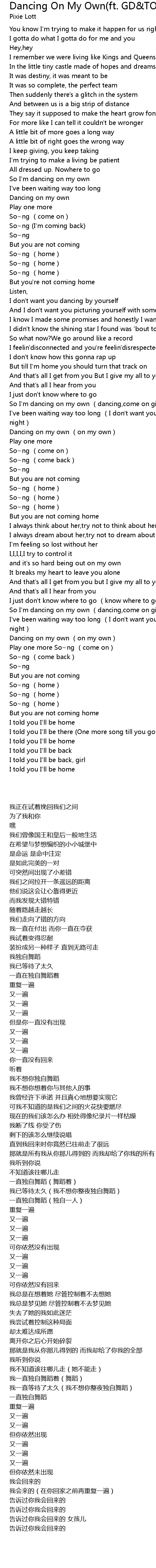 | [01:08.50] | Dancing on my own |