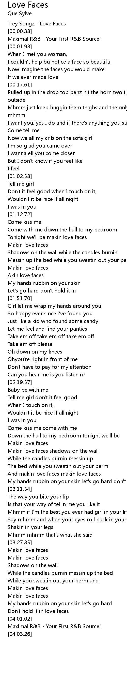 | [02:56.00] | And makin love faces makin love faces |