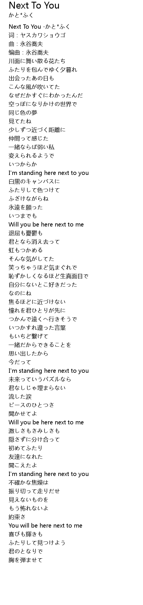 | [00:23.473] | ふたりを包んでゆく夕暮れ |