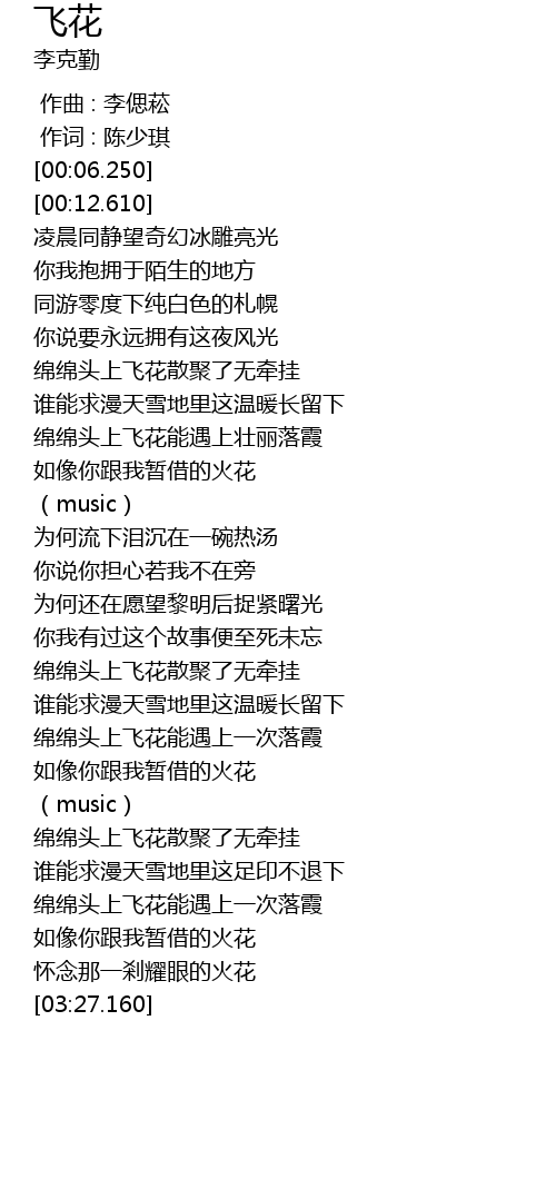 | [03:12.130] | 如像你跟我暂借的火花 |